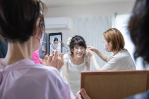 出産撮影フォトブック、余命数日のウェディングドレスの女性の